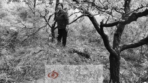 得知“王书金案”再次开庭的消息,不顾雨大路滑,张焕枝执意要到儿子聂树斌的坟上“告诉他一声”。位于下聂庄村西山山半腰杏林中的这个坟茔已几近平坦,坟头正上方的一枝红杏因果子太稠而被压断倒在聂树斌的坟头上,张焕枝央求大河报记者帮忙把断枝移开,“我不愿任何东西压在儿子身上”。